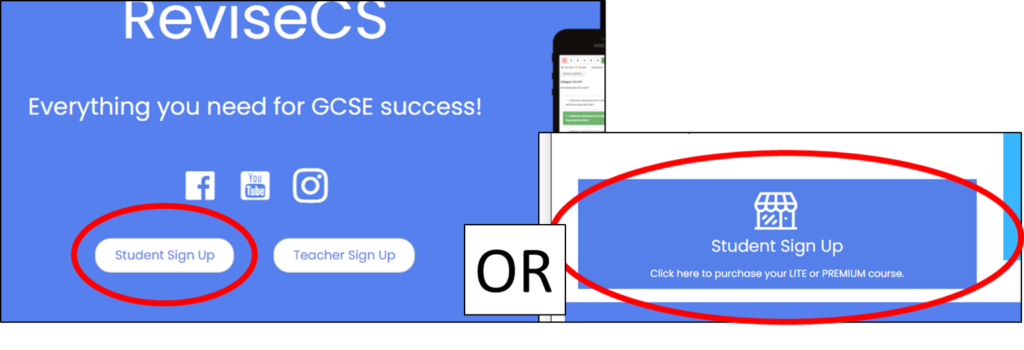 To purchase a course and create your account, click on either the Student Sign Up button or the Student Shop icon (both located on the homepage) and head through to the shop.